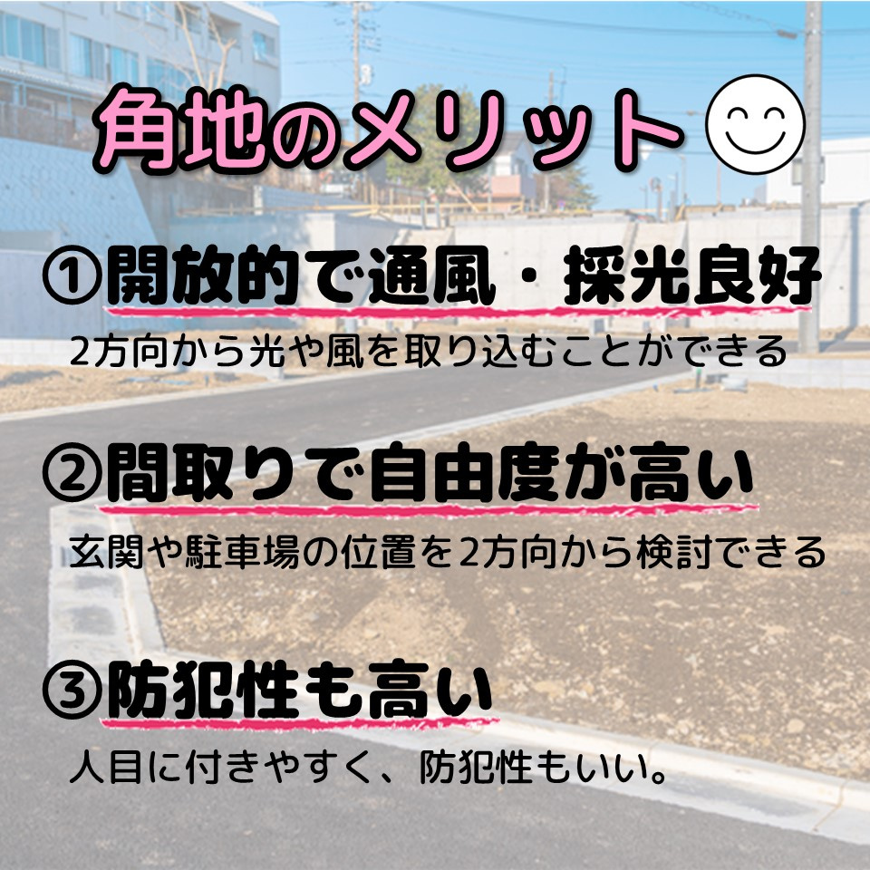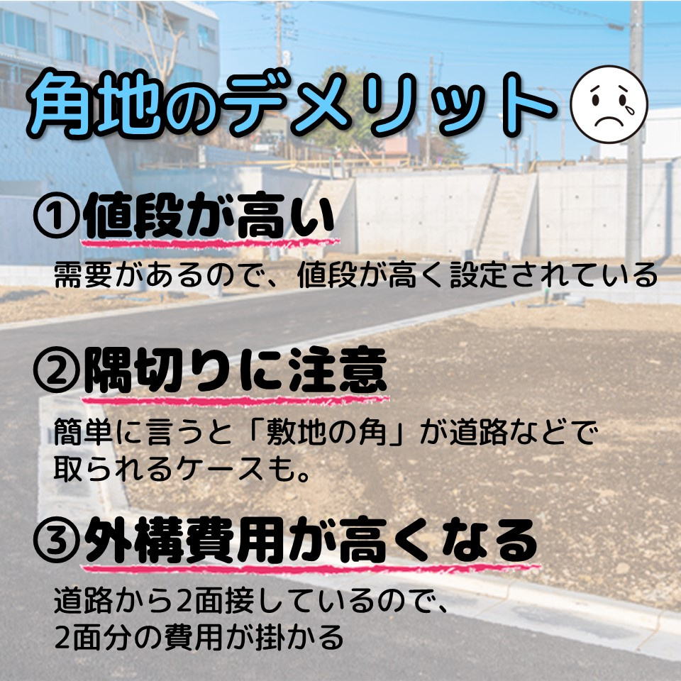 角地は良い所がある反面、このようなデメリットもあります。